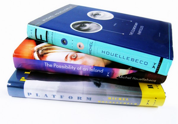 Pictured: Michel Houellebecq and Iggy Pop, Iggy t-shirt circa 1985, 1st English language editions of Platform, Possibility of an Island and Elementary Particles.